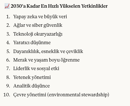 Dünya Ekonomik forumu iki senede bir, gelecek 10-20 senenin yetkinliklerini yayınlıyor. En son liste şöyleydi:
